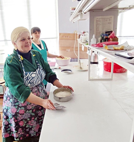 Щодня на імпровізованій кухні підприємства працюють 12 жіночок. За день вони використовують щонайменше 50 кілограмів борошна та 2 кг дріждів!