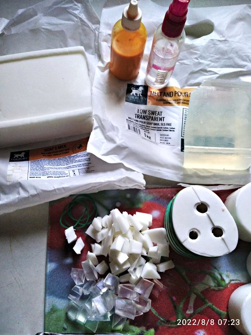 Мильна основа буває прозора і непрозора біла. Пані Юлія розповіла, що для більш інтенсивного кольору прозора краще підходить. Біла дає не такий яскравий відтінок, але природніший. Барвники використовує турецького виробництва. Ароматизатори саме в процесі підбору.