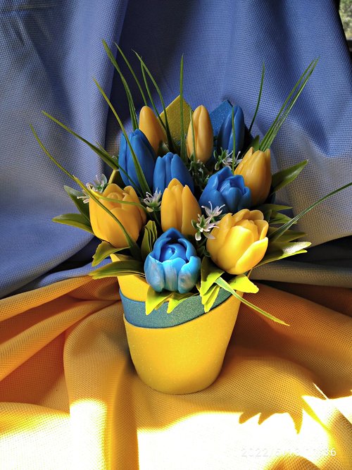 – Якщо є готові квіти, букет зробиться швидше. А коли квітів немає, то довго. Для букета з дев’яти тюльпанів треба зробити три заливки, бо в мене три форми. А ще бутони. То ж разом чотири-п’ять заливок. Це 3-4 години роботи. А ще треба зібрати букет. Якщо є уявлення, яким він буде – то це швидше. Важливо, у що я збиратиму – паперовий чи пластиковий стакан. У кошики ще не складала.