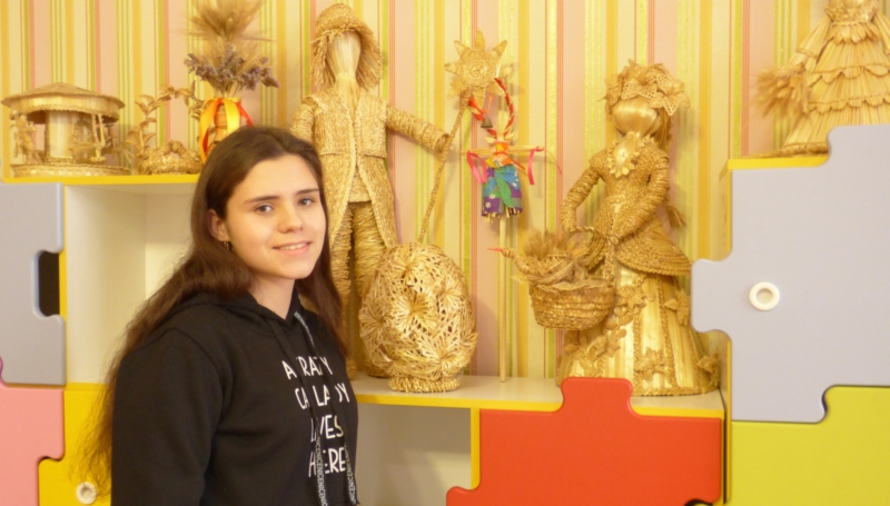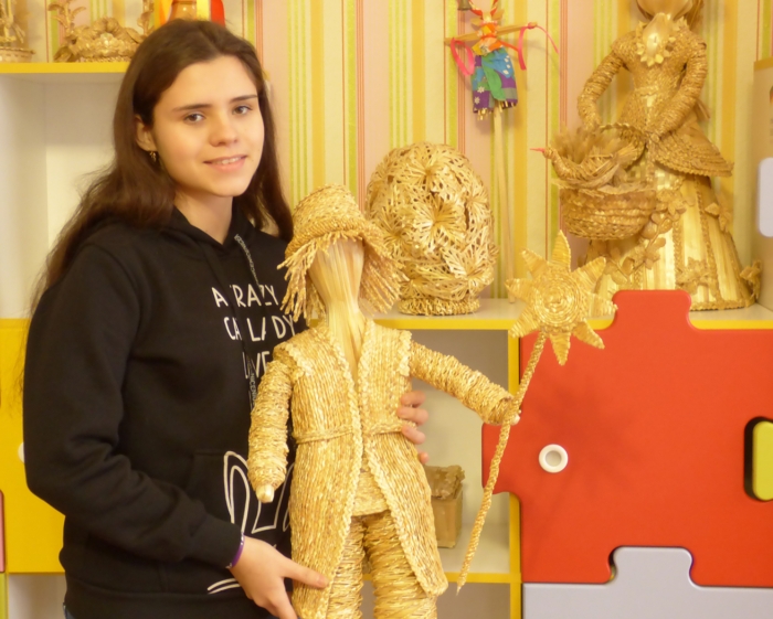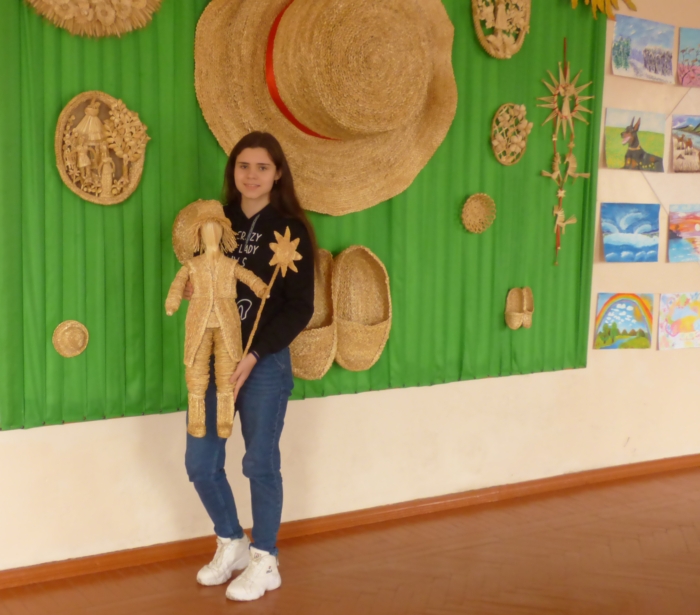 – Гурток соломоплетіння я відвідую вже три роки, з шостого класу, – розповідає Альона. – До цього плела різні вироби з бісеру, трохи вишивала. А соломою зацікавилася випадково, з подачі двоюрідного брата Сашка, він привів мене сюди. Подивилася, чим тут займаються, мені сподобалося. Так і залишилася.