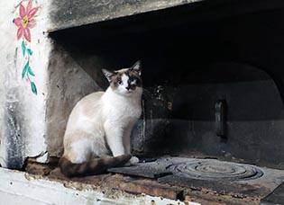 Кіт Васько до грубки тулиться.
