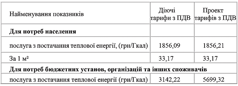 Тарифи, які виносяться на обговорення для бюджетних установ та для інших споживачів: