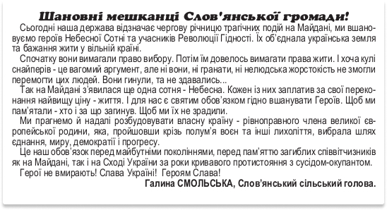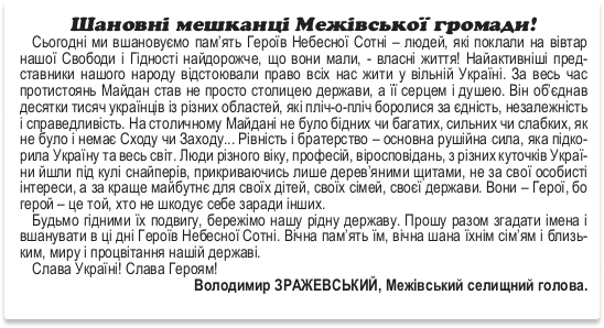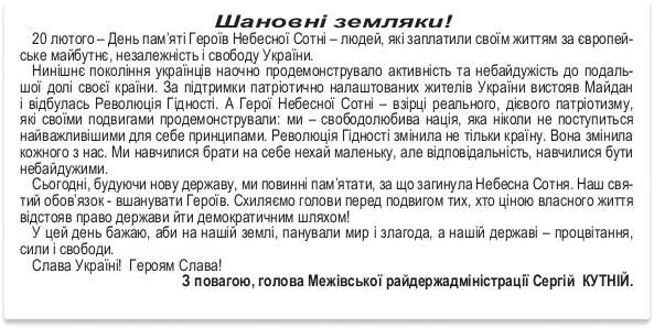 Привітання з Днем Героїв Небесної Сотні