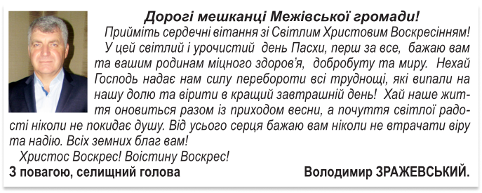 Офіційно Великодні привітання від народного депутата України і керівництва Межівського району 18 Квітня, 2020 Redactor Переглядів: 747