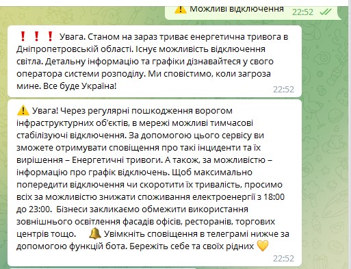 Про це повідомляє телеграм-бот YASNO-online.