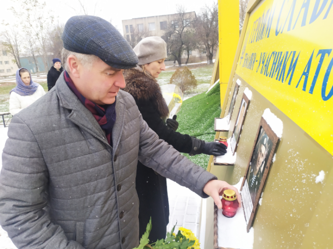 …У цей день відбулося покладання квітів до  пам’ятника Героям Небесної сотні та Героям АТО – у центрі нашого селища, у якому взяли участь Межівський селищний голова Володимир Зражевський, керівник апарату районної державної адміністрації Людмила Яцура, керуюча справами районної ради Вікторія Діденко, заступник селищного голови Ірина Новак.
