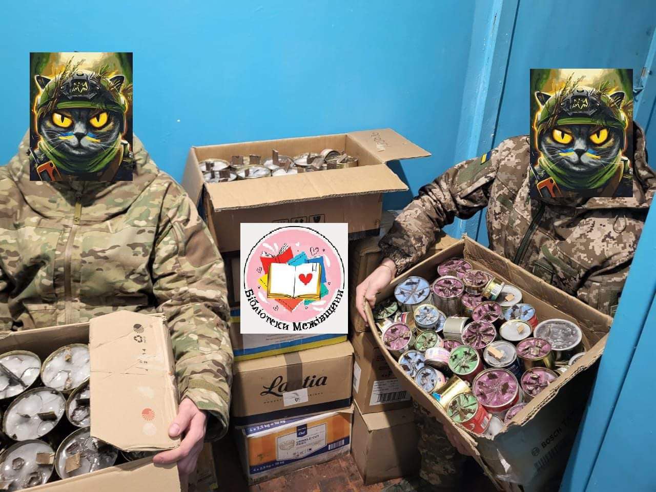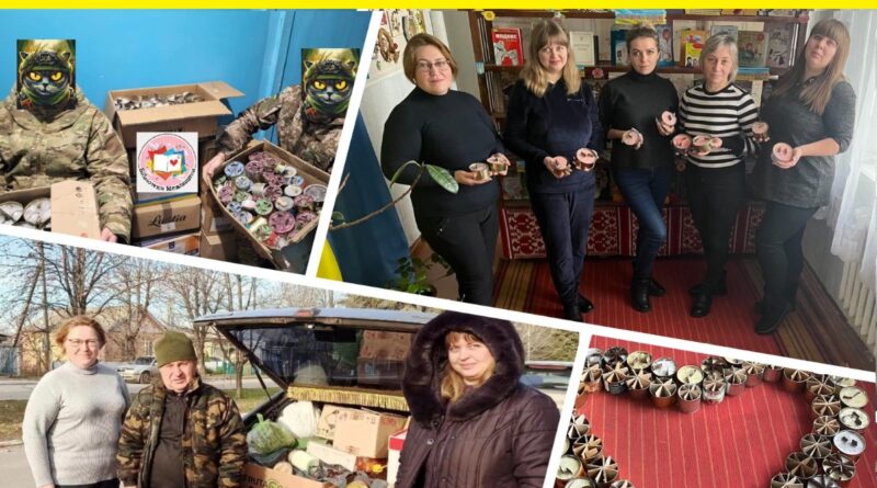 Ще однією акцією, оголошеною бібліотекарями до Дня захисників та захисниць України була «Зігрій котика ЗСУ» – збір посилок для бійців на фронт. Передбачалося зібрати подарунки до свята: шкарпетки, устілки для взуття, чай, каву. Оголошуючи цю акцію, не думали, що вона стане такою масштабною. Та потім люди стали приносити все більше гостинців, і стало зрозуміло, що акція стає постійною, і пора розширювати поле діяльності.