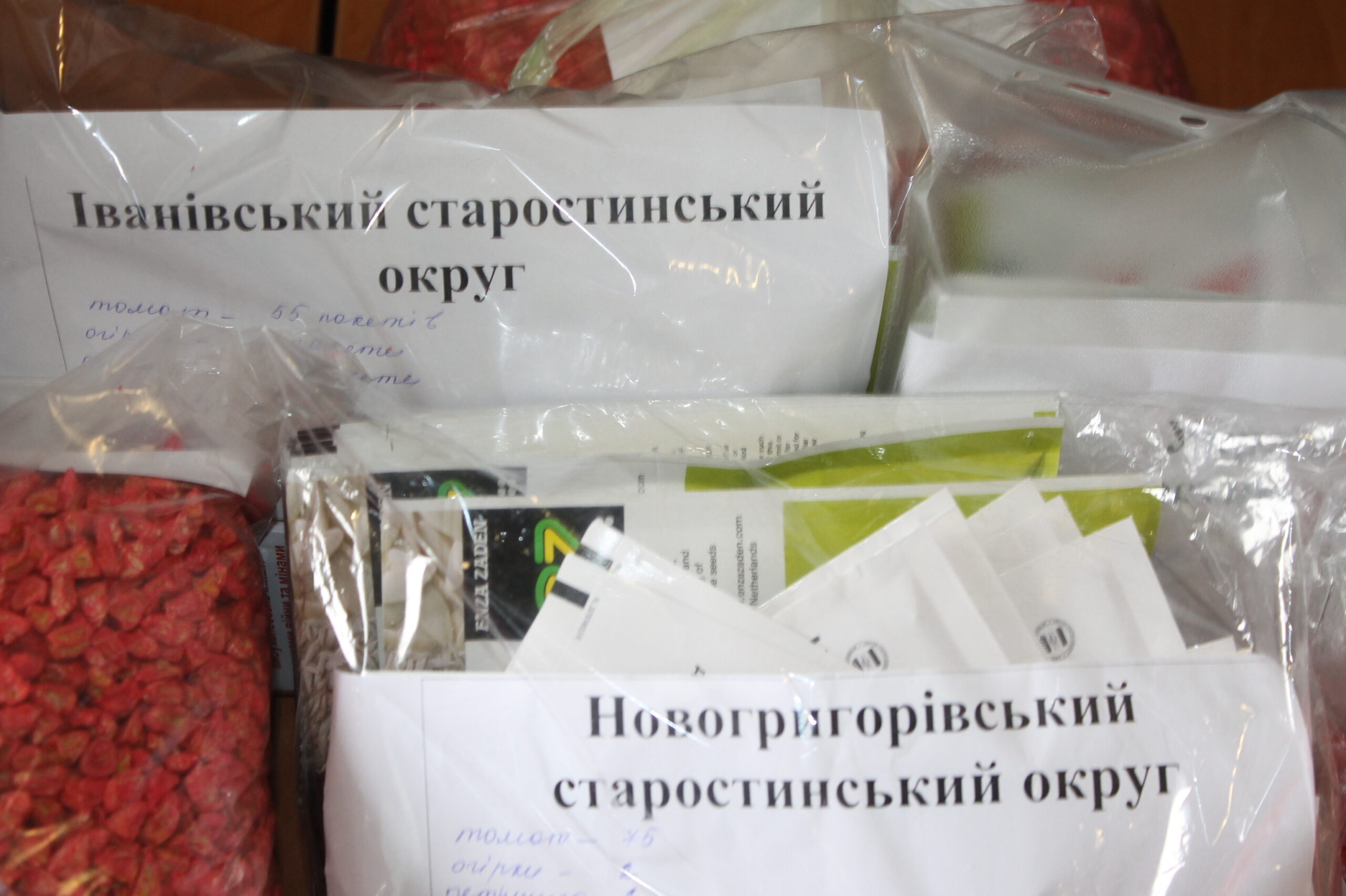 Протягом останнього тижня відбулася передача комплектів насіння старостинським округам, установам, підприємствам та організаціям, а також громадянам, серед яких внутрішні переселенці, пільгові категорії населення.