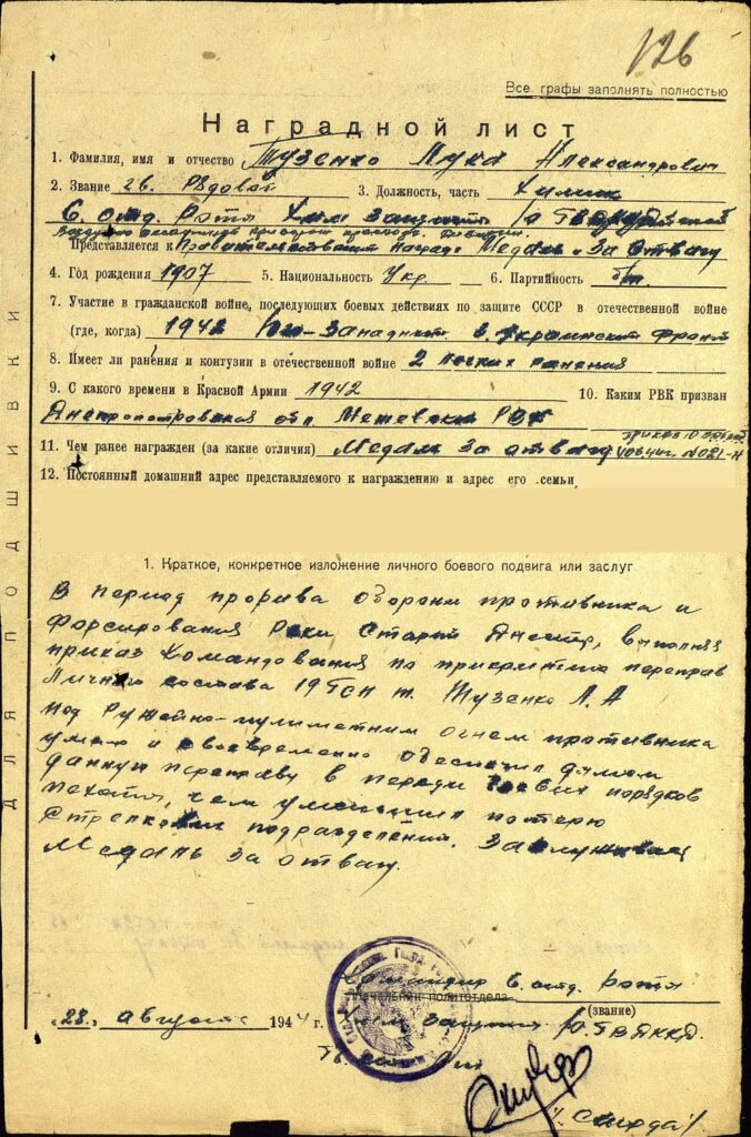 З нагоди цього свята хочу розповісти про свого дідуся, Тузенка Луку Олександровича (1907 р.н.) з села Мала Покровка (Зорянська сільська рада), який захищав нашу Батьківщину від загарбників. У перші ж дні окупації Межівщини разом із товаришем він підпалив, щоб не дістався ворогові, покинутий радянський танк, який при відступі частин Червоної Армії залишився без пального поблизу р. Бичок. За це його з напарником забрали в гестапо. Але той мужній хлопець узяв усю провину на себе, бо в дідуся вже було 2 дітей, і хлопця розстріляли, а дідуся відпустили.