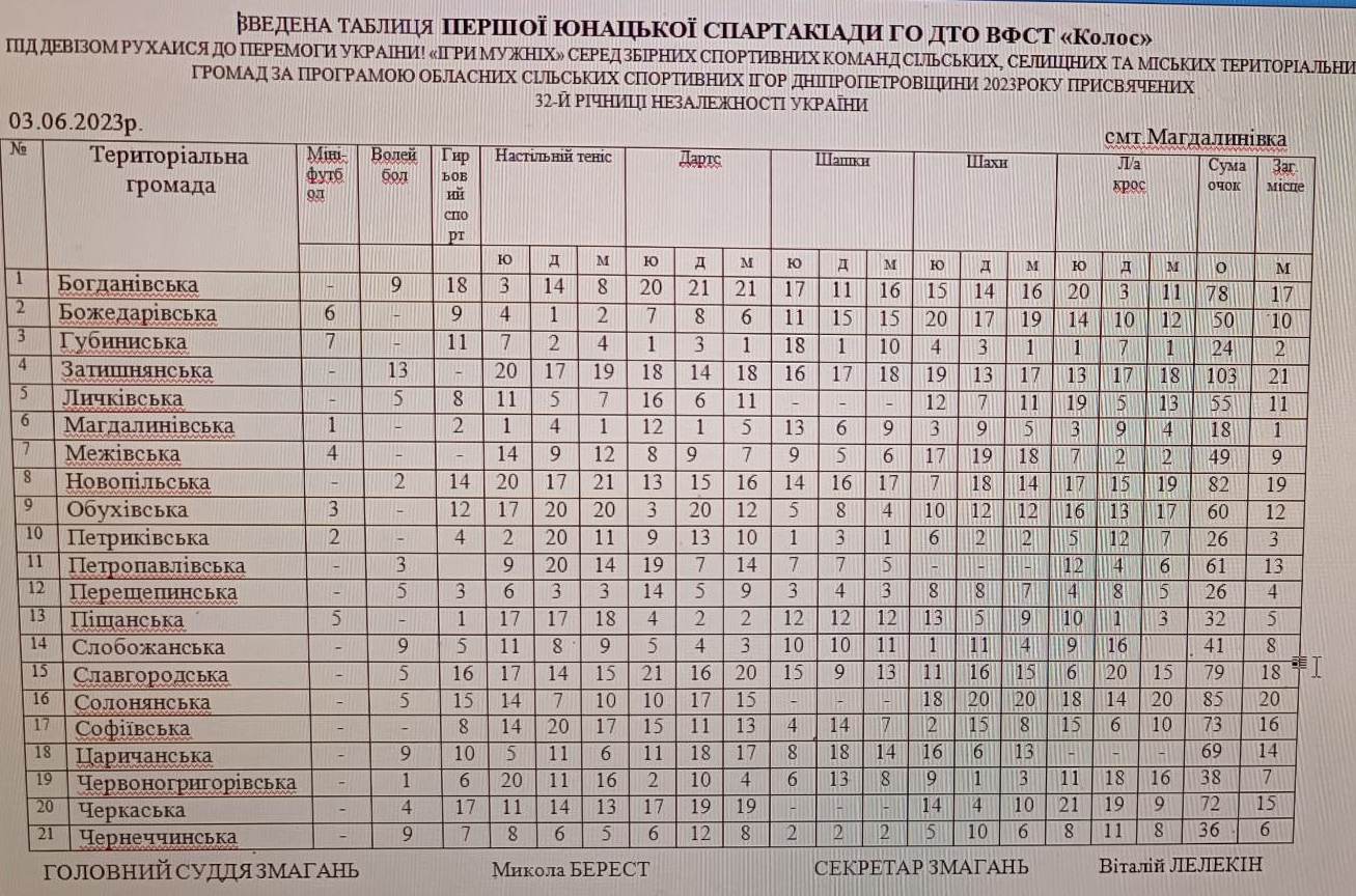 У Магдалинiвцi Новомосковського району було проведено І юнацьку комплексну спартакіаду Днiпропетровщини ГО ДТО ВФСТ “Колос” пiд гаслом “Разом до перемоги Украiни!».