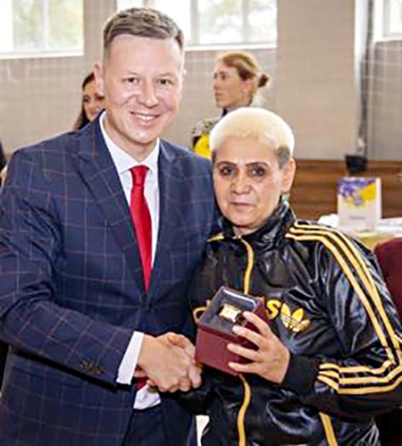 Заступник голови Дніпропетровської обласної державної адміністрації Максим Беспальчук привітав гостей свята від імені губернатора Валентина Резніченка та за багаторічну сумлінну самовіддану працю, вагомий особистий внесок у реалізацію державної політики в сфері розвитку фізичної культури і спорту в регіоні нагородив наручним годинником від голови ДніпроОДА заступника директора Межівської ДЮСШ, тренера-викладача з волейболу Галину Мустафівну Ткаченко.