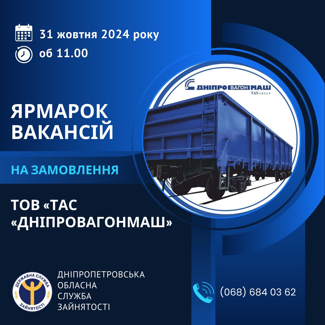 На заході провідний роботодавець міста – ТОВ «ТАС «Дніпровагонмаш» презентує актуальні пропозиції роботи: