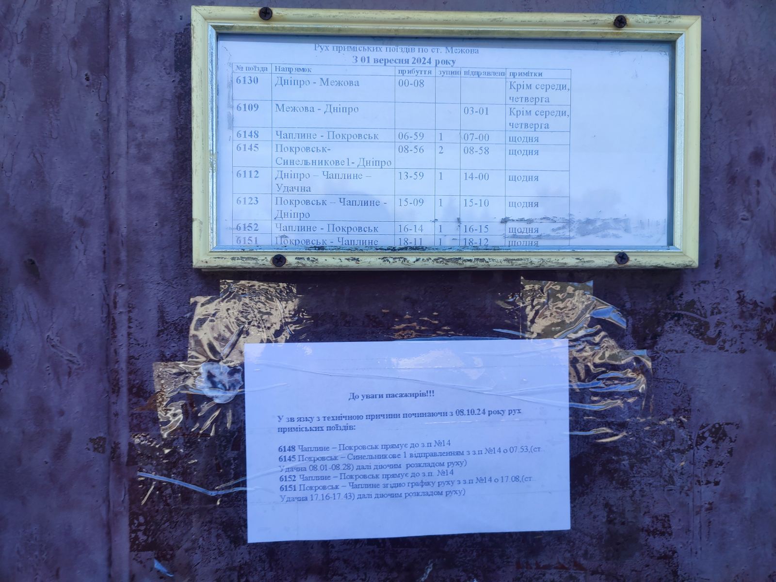 Зміни в розкладі електричок по станції Межова з 8 жовтня 2024 року
