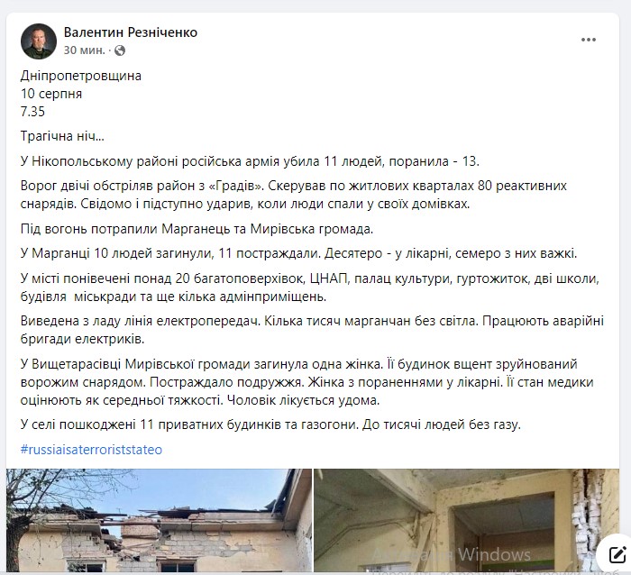Ворог двічі обстріляв район з «Градів». Скерував по житлових кварталах 80 реактивних снарядів. Свідомо і підступно ударив, коли люди спали у своїх домівках.