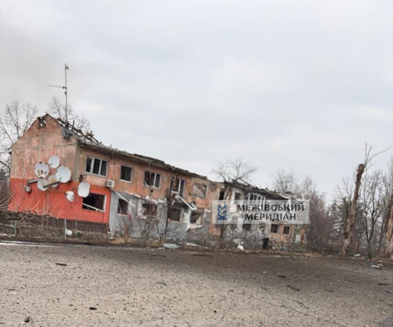У ніч на 23 лютого комбіновані удари КАБами призвели до значних руйнувань. Пряме влучання у адміністративну будівлю КП “Комунсервіс” Межівської громади.