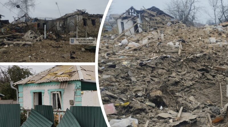 “По Межівській громаді Синельниківщини противник влучив КАБ та дроном. Зруйновані 2 оселі, 15 – пошкоджені”.