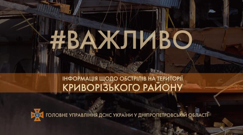 Зранку російські війська кілька разів з РСЗВ вдарили по Криворізькому району. Навмисно били по селах Апостолівської та Зеленодольської громад.