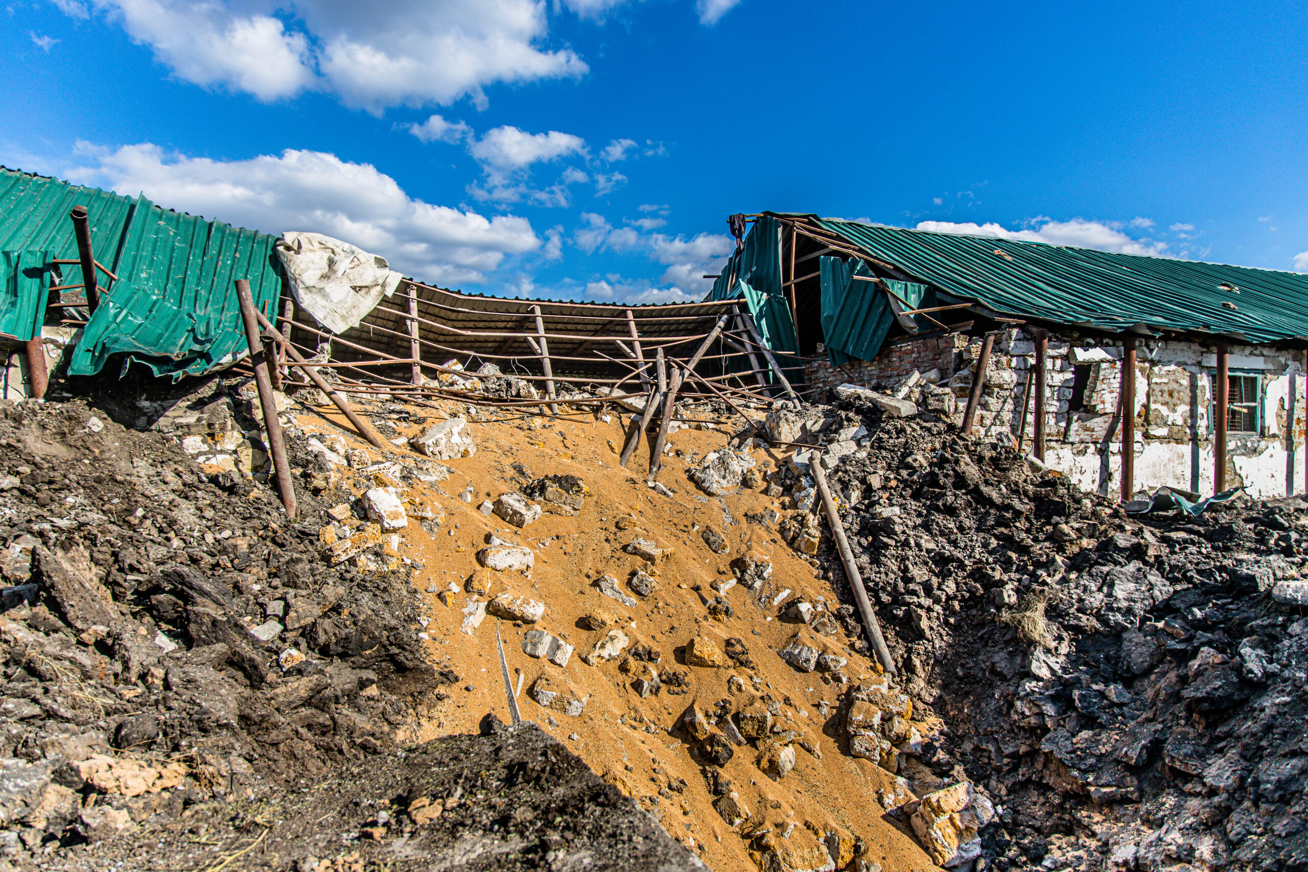 Гігантська вирва, понівечене зерносховище. Такі наслідки ракетної атаки на одне з агропідприємств Синельниківського району. «Приліт» стався пообіді 21 вересня. Нині там підраховують збитки та намагаються хоч щось відновити.