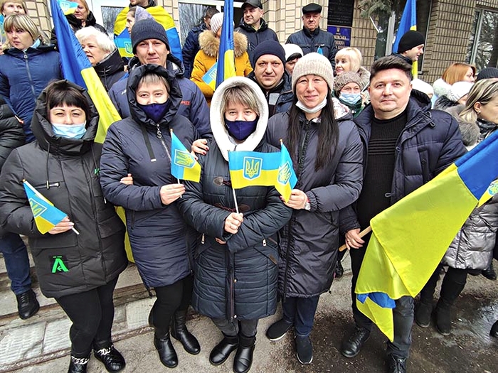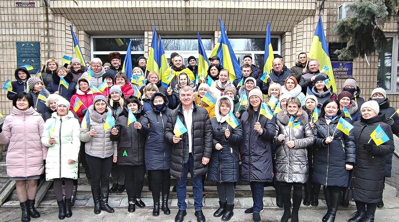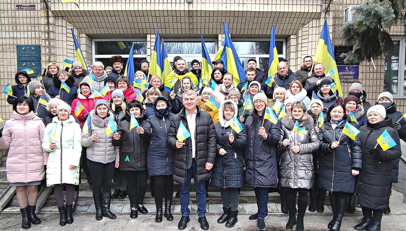 16 лютого біля Межівської селищної ради відбувся яскравий патріотичний флешмоб. Прийшли представники установ та організацій з великими та малими прапорами України, синьо-жовтими стрічками, продемонструвавши згуртованість і спільне прагнення до свободи.
