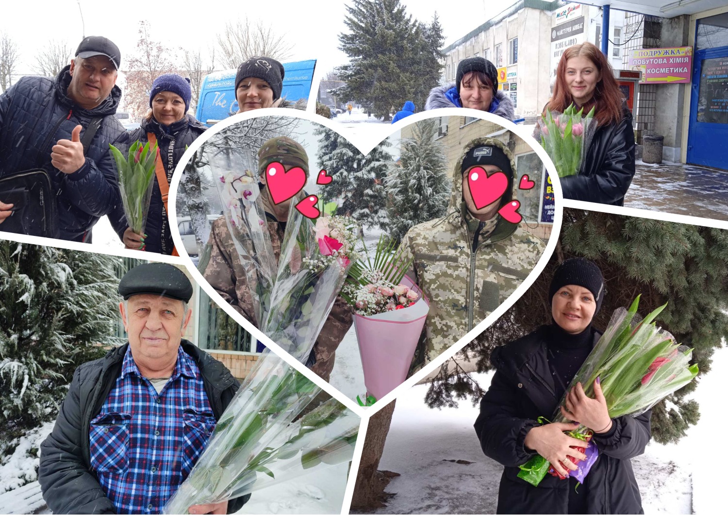 …День Закоханих зустрів межівчан мокрим, лапатим снігом, немов би виправдовуючись за безсніжну зиму. У центрі селища зустрічаємо чоловіків, які поспішають придбати квіти та подарунки… Та жінок і дівчат вже з букетами тюльпанів та троянд…