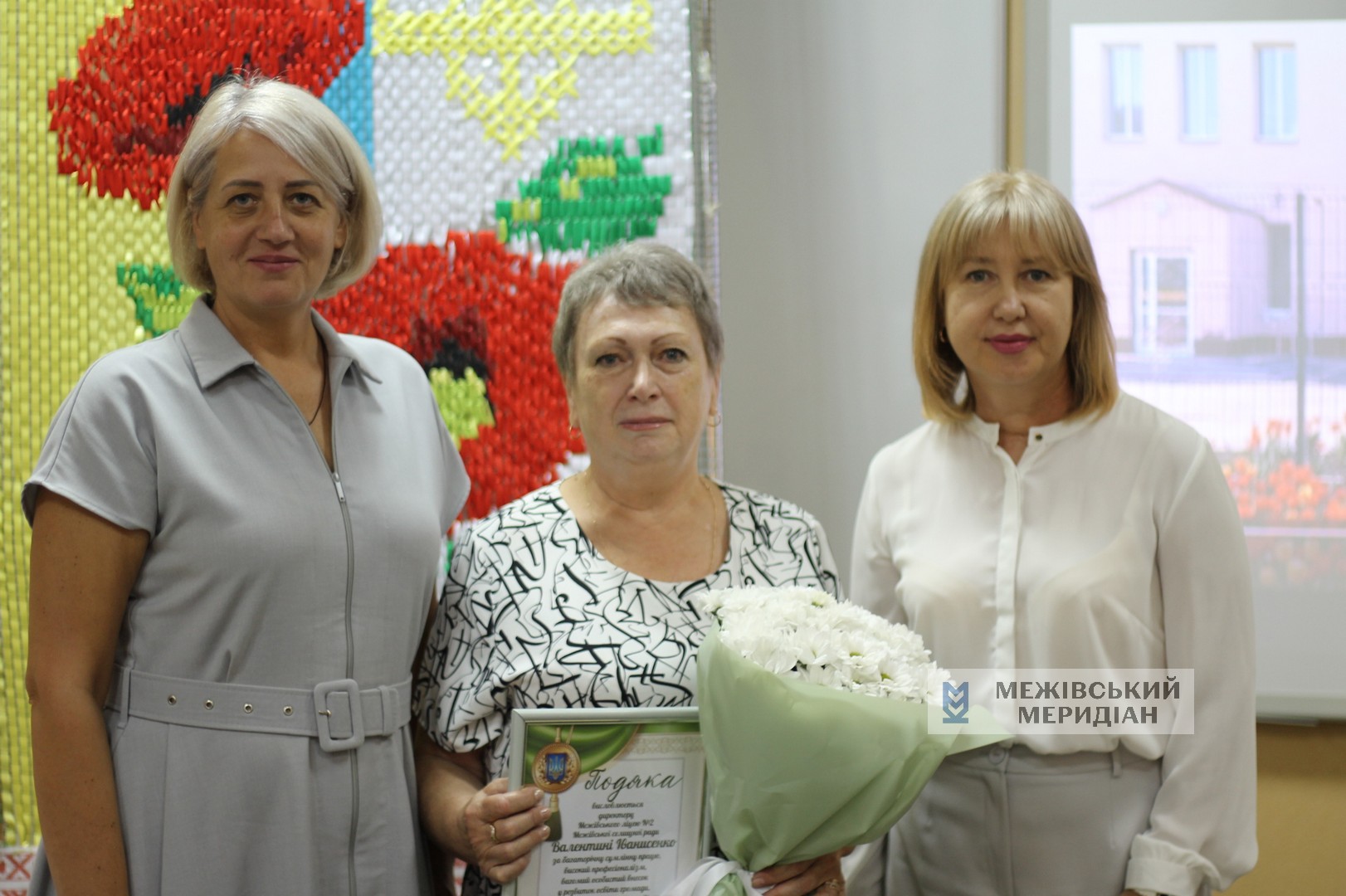 Цього дня вшанували директорів, які завершують свою роботу на посаді. Директорку Межівського ясла-садочка «Малятко» Валентину Іванівну Деревенець, директорку Межівського ліцею № 2 Валентину Григорівну Іванисенко, директорку Володимирівського ліцею Валентину Іванівну Сидоренко.