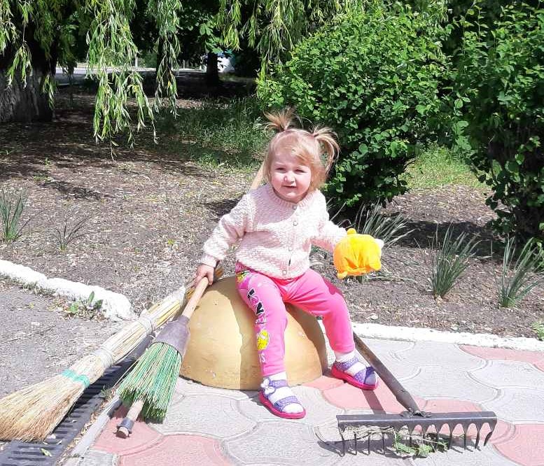 Біля Межівського аграрного ліцею разом з директором Оленою Зарудняк працюють цілі родини – з Бахмута та Новоукраїнки (Вугледарська місцька рада). Дорослим намагається допомогти навіть маленька Віталіна… Виглядає це дуже зворушливо.