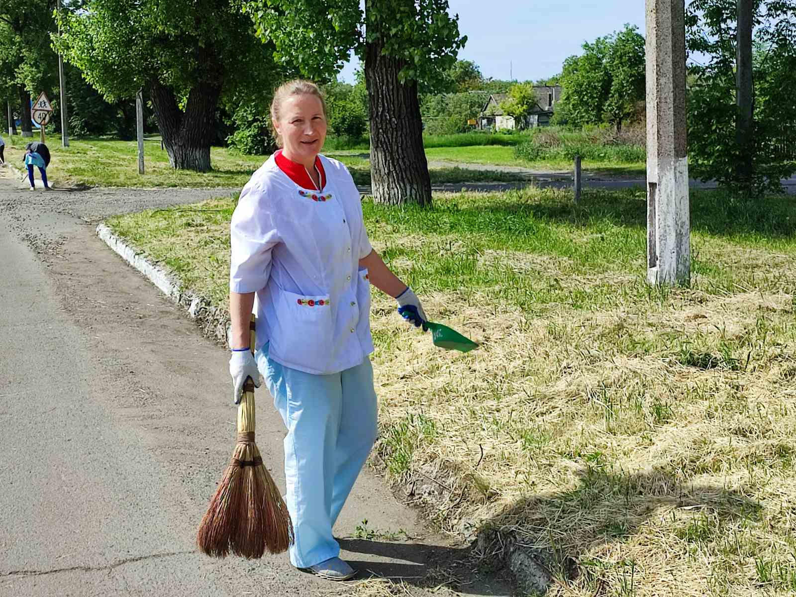 Сама вчитель української мови та літератури, завуч школи. Працювати вийшла із задоволенням, жартує, що до суботників педагогам не звикати.