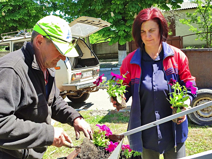 Біля 100 петуній вже висадили на території селища працівники відділу будівництва, архітектури та благоустрою Межівської селищної ради (керівник Євген Макара).
