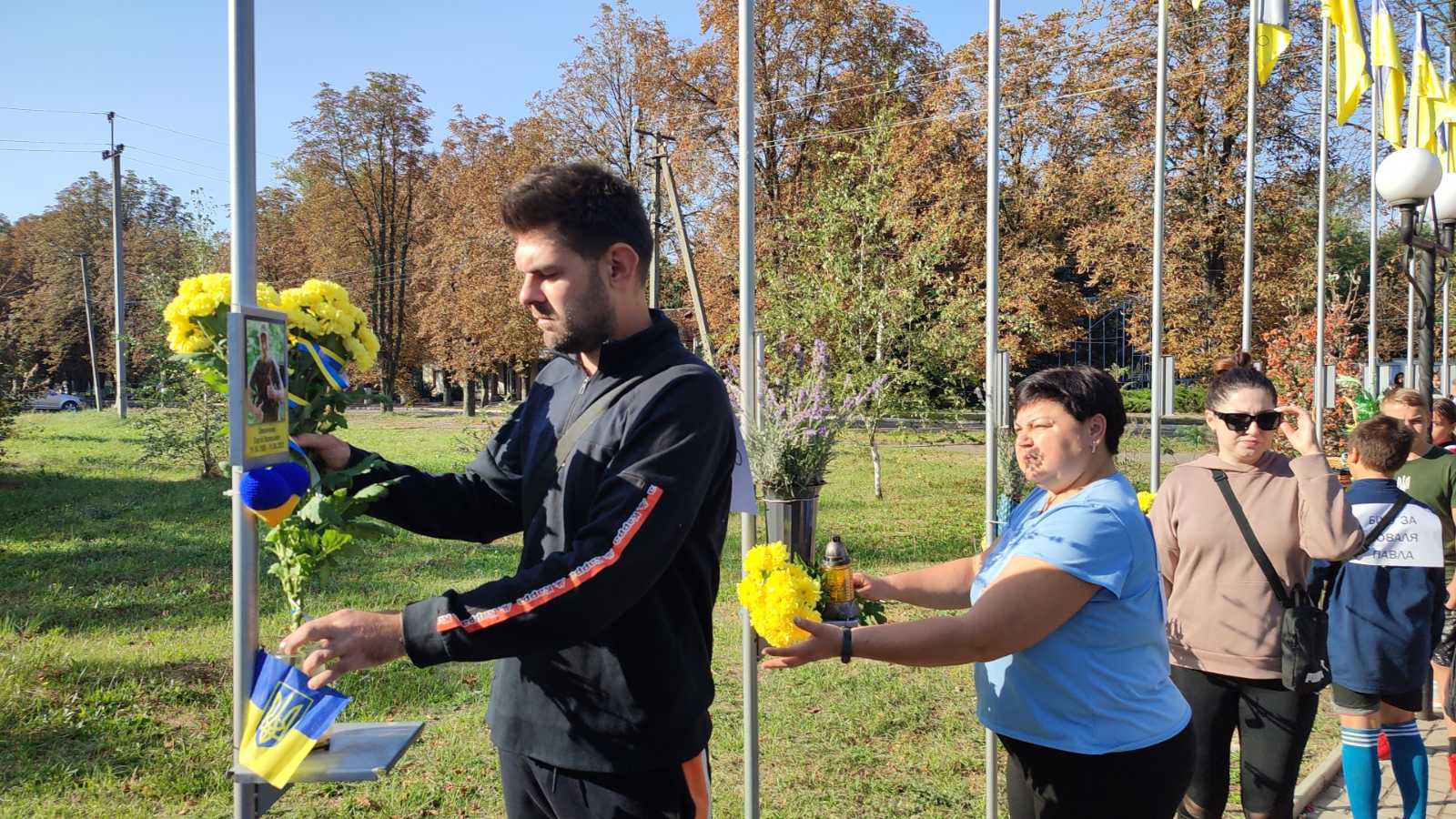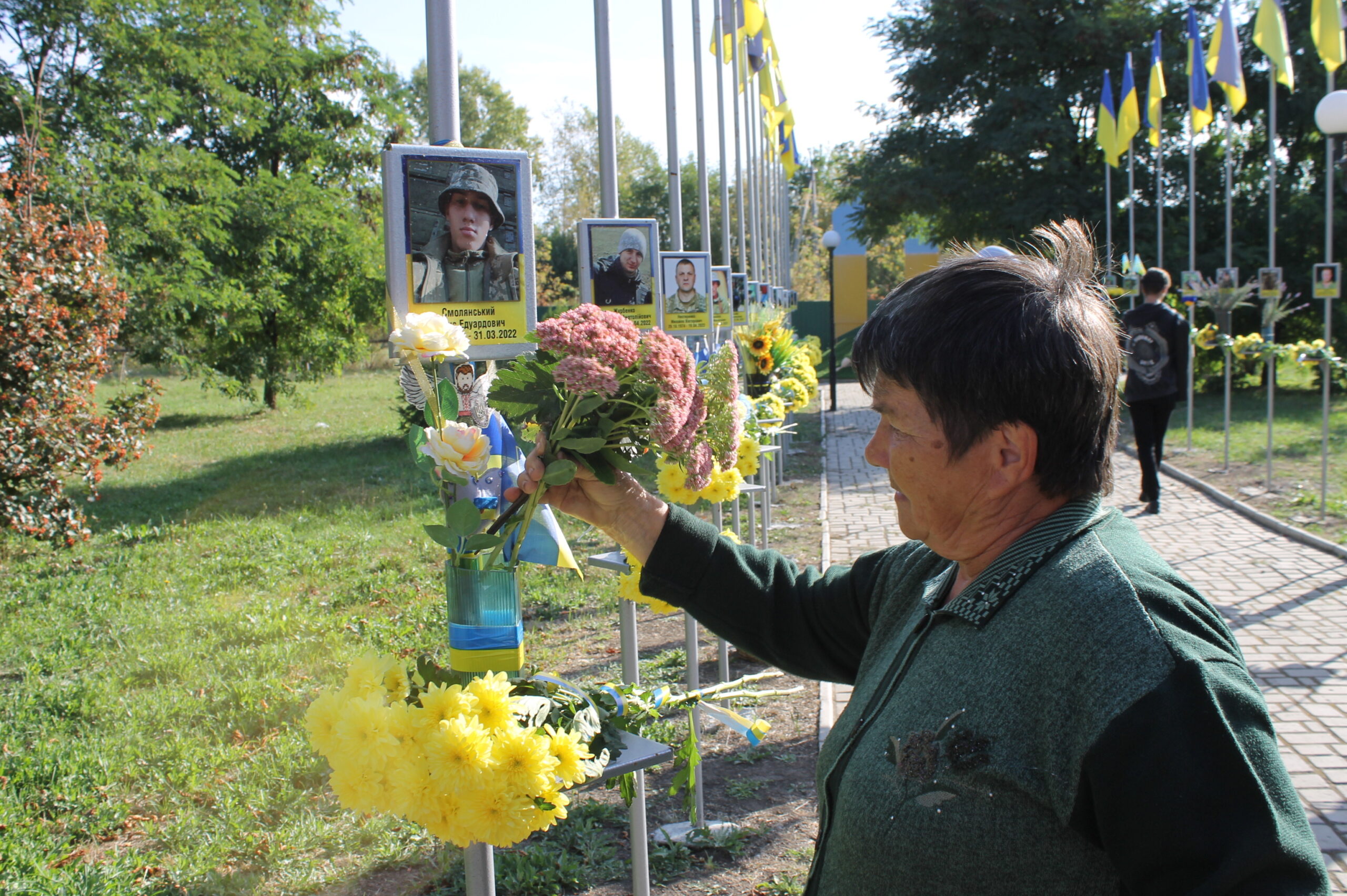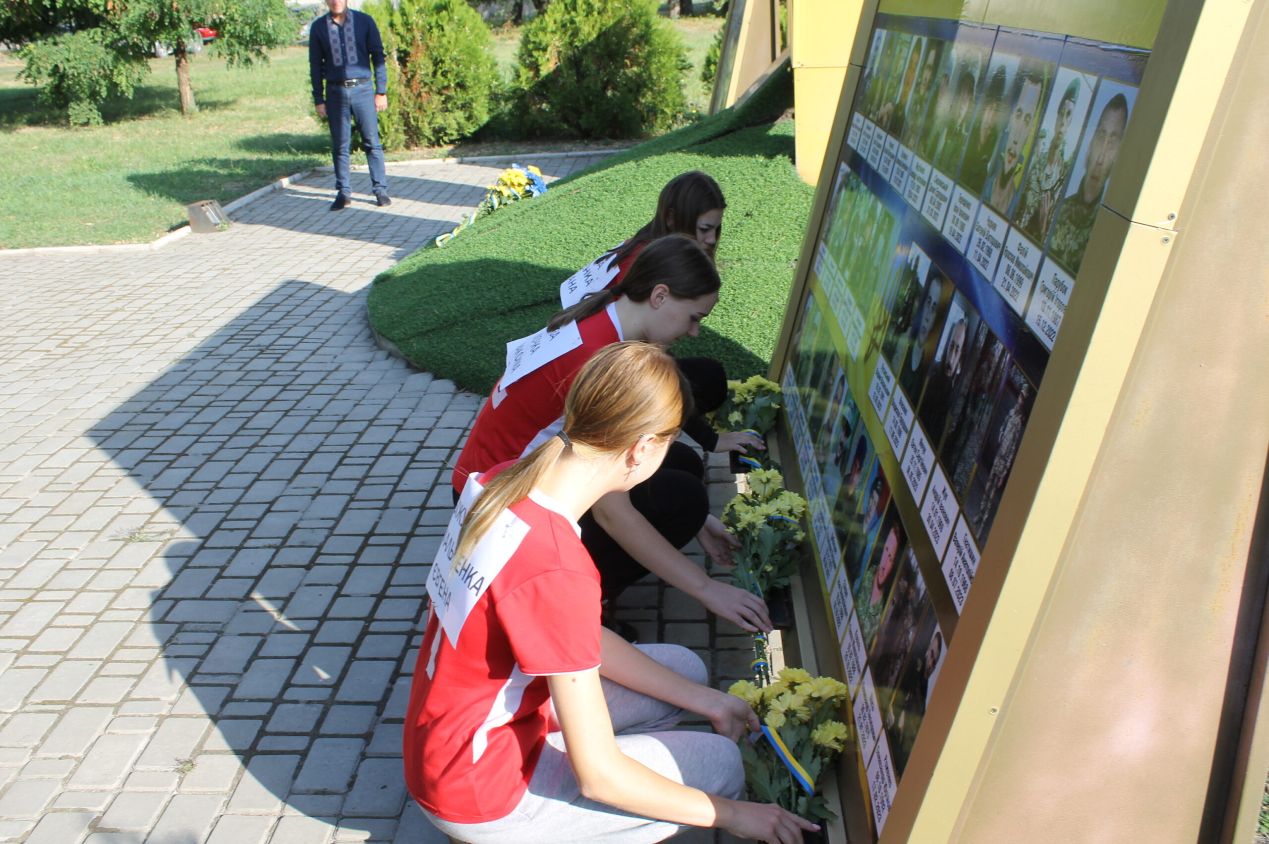 На знак пам’яті про Героїв – до портретів на Алеї Героїв та підніжжя Пам’ятного знаку лягли букети живих квітів від вдячних земляків.