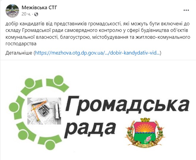 У Межівській СТГ вдруге оголошено про добір кандидатів до Громадської ради самоврядного контролю у сфері будівництва